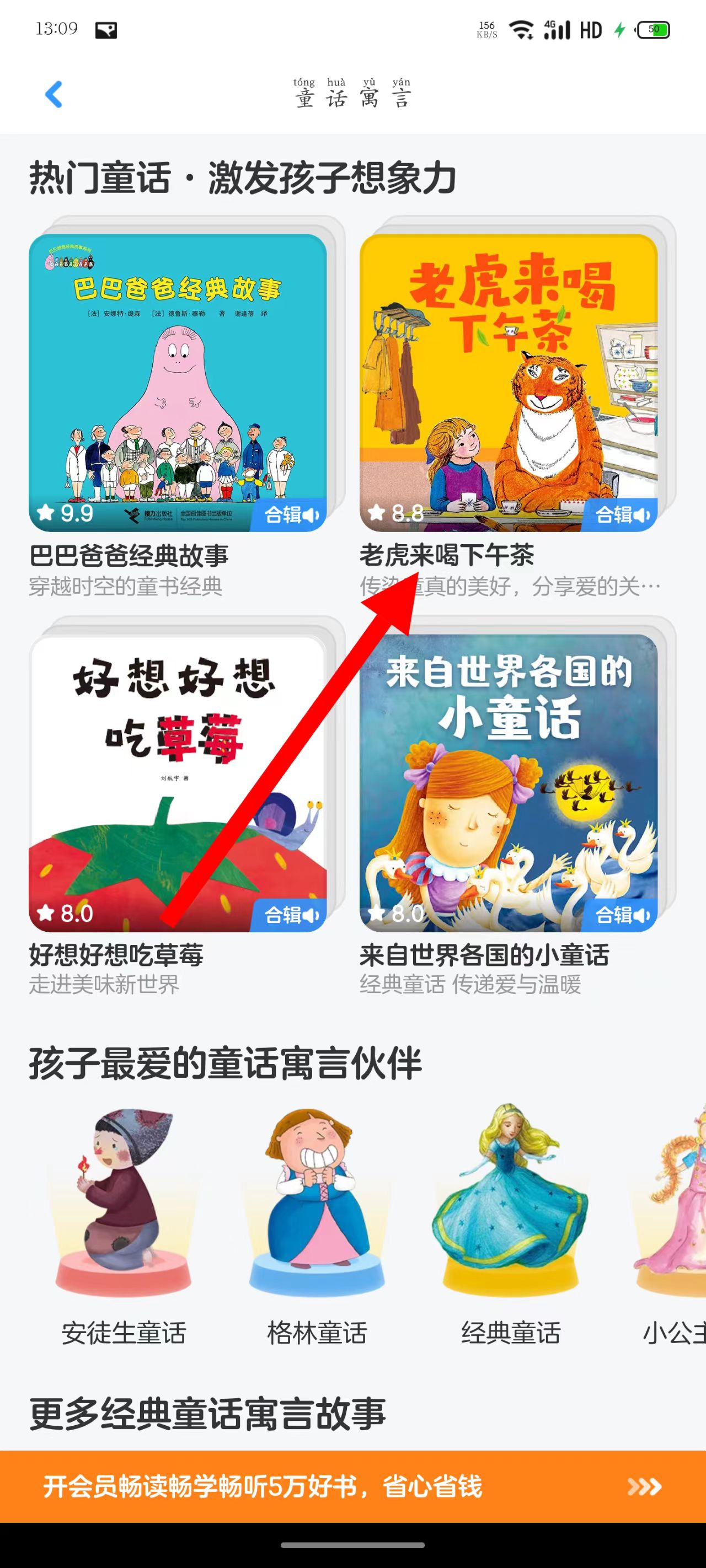 2、在童话寓言页面点击老虎来喝下午茶,进入该绘本合辑页面。