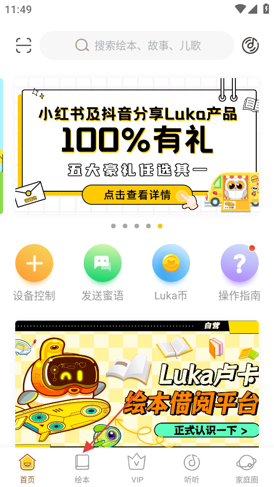 1、在软件首页,点击底部绘本按钮,进入绘本相关页面。