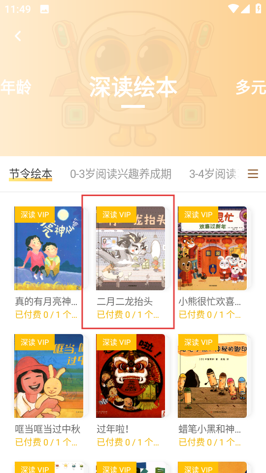 3、在深读绘本列表中,选择二月二龙抬头绘本,进入该绘本详情页。