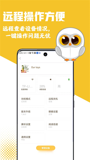 2、习惯养成辅助:可配合机器人设定每日阅读提醒、阅读时长目标,通过规律性的阅读引导,帮助孩子建立每天看绘本的固定习惯,强化阅读的持续性。