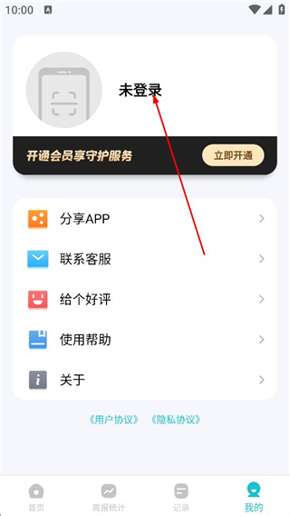 2、在我的页面中,点击未登录的区域,进入登录界面。