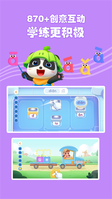 宝宝巴士拼音是一款专为3-8岁儿童设计的汉语拼音启蒙应用,依托生动有趣的动画场景互动教学模式,帮助小朋友快快乐乐掌握23个声母24个韵母16个整体认读音节,通过拟人化字母角色闯关故事线串联知识要点,结合AI智能发音纠正系统,解决传统拼音学习中枯燥难记发音不准等核心痛点。