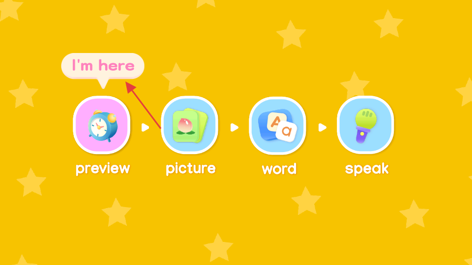 3、完成关卡巩固学习:动画结束后进入关卡练习环节,通过单词匹配、发音跟读、图片选择等题型,检验孩子的学习效果,再根据掌握情况选择进入下一关卡当前内容。