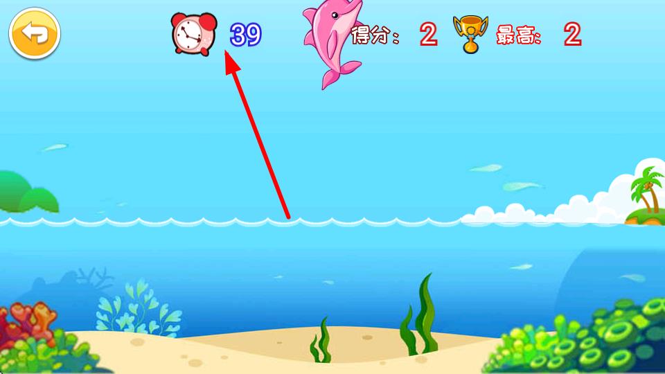 3、密切关注倒计时,在时间耗尽前尽可能多地点击海豚,像画面中倒计时到39秒时,继续点击保持得分增长,争取获得更高分数,超越最高记录。