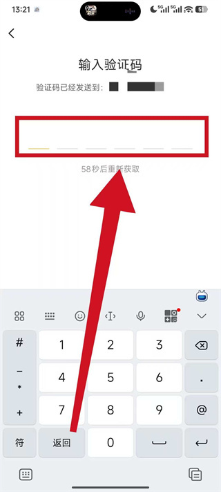 4、进入验证码页面后,将收到的短信验证码填入输入框,即可完成账号登录。