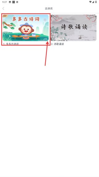3、在古诗词内容列表里,点击多多古诗词,进入多多古诗词的具体内容页。
