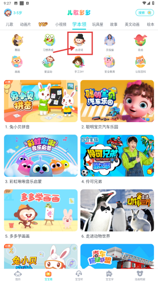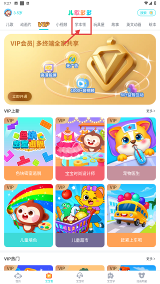 1、打开儿歌多多应用,点击顶部学术馆选项,进入学术馆页面。