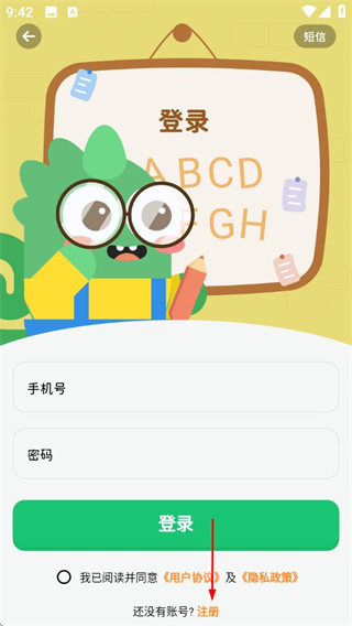 3、在登录页面,点击还没有账号注册选项,进入注册页面。
