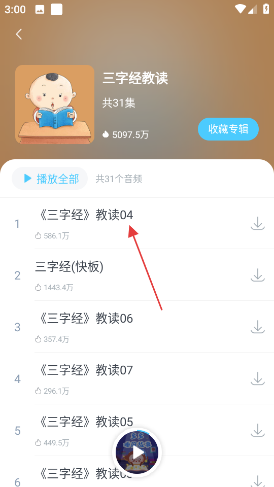 3、在三字经教读详情页,点击三字经教读04,进入播放页面。