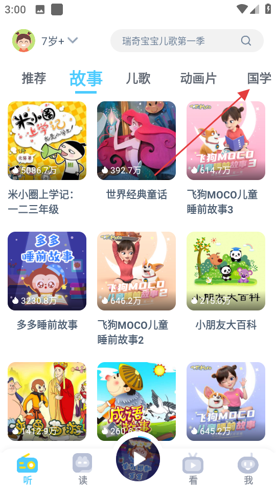 1、选择内容类型:打开软件后,通过首页“儿歌”“故事”“动画”分类栏,选择对应内容类型,再根据宝宝年龄或兴趣,挑选具体的早教内容。