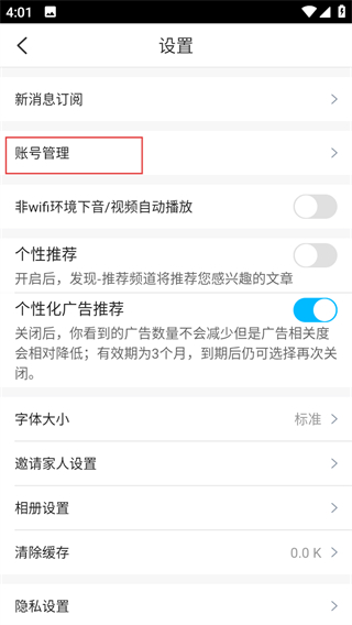 3、在设置页面,点击账号管理,进入账号管理页面。
