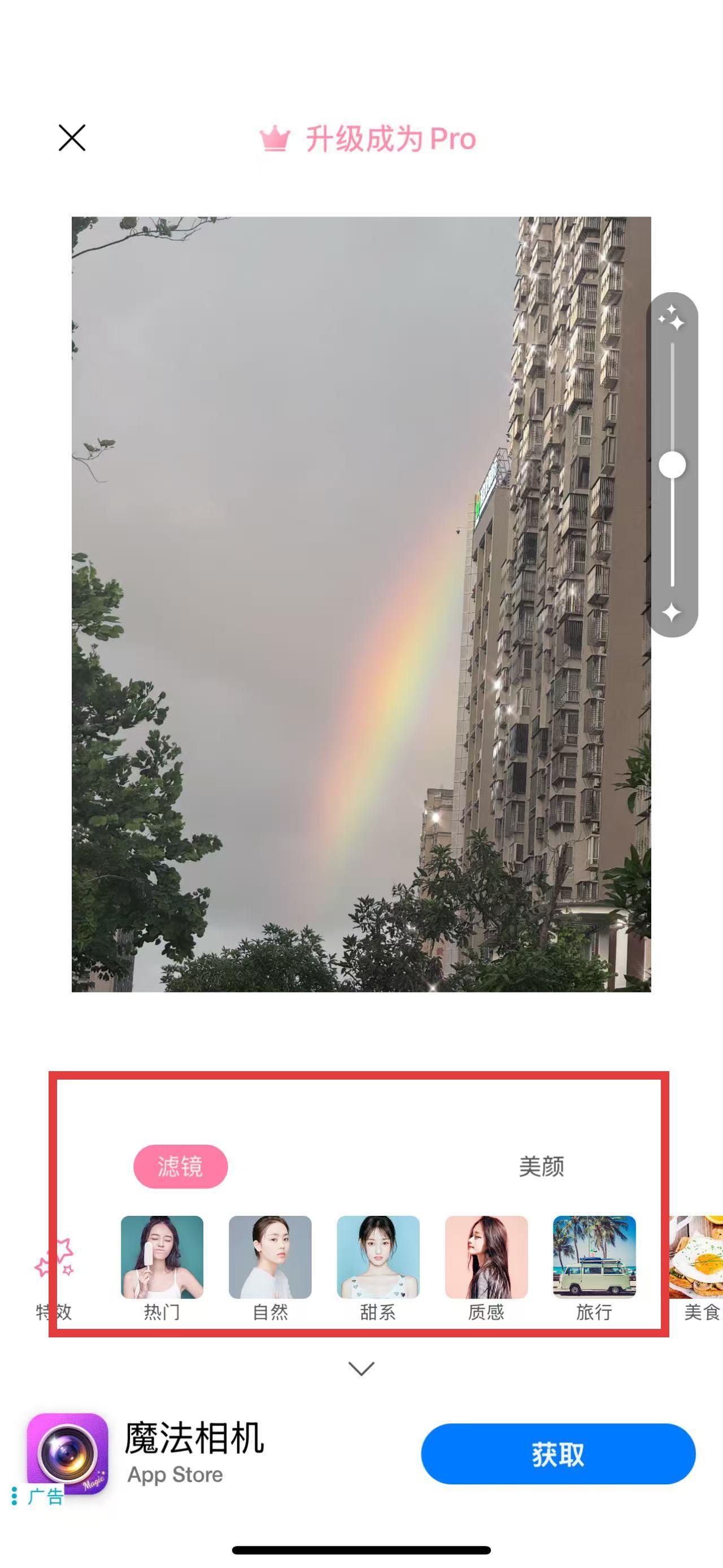 3、在编辑界面下方,找到滤镜和美颜等选项,点击选择合适的滤镜风格或者调整美颜参数,完成对照片的修图操作。
