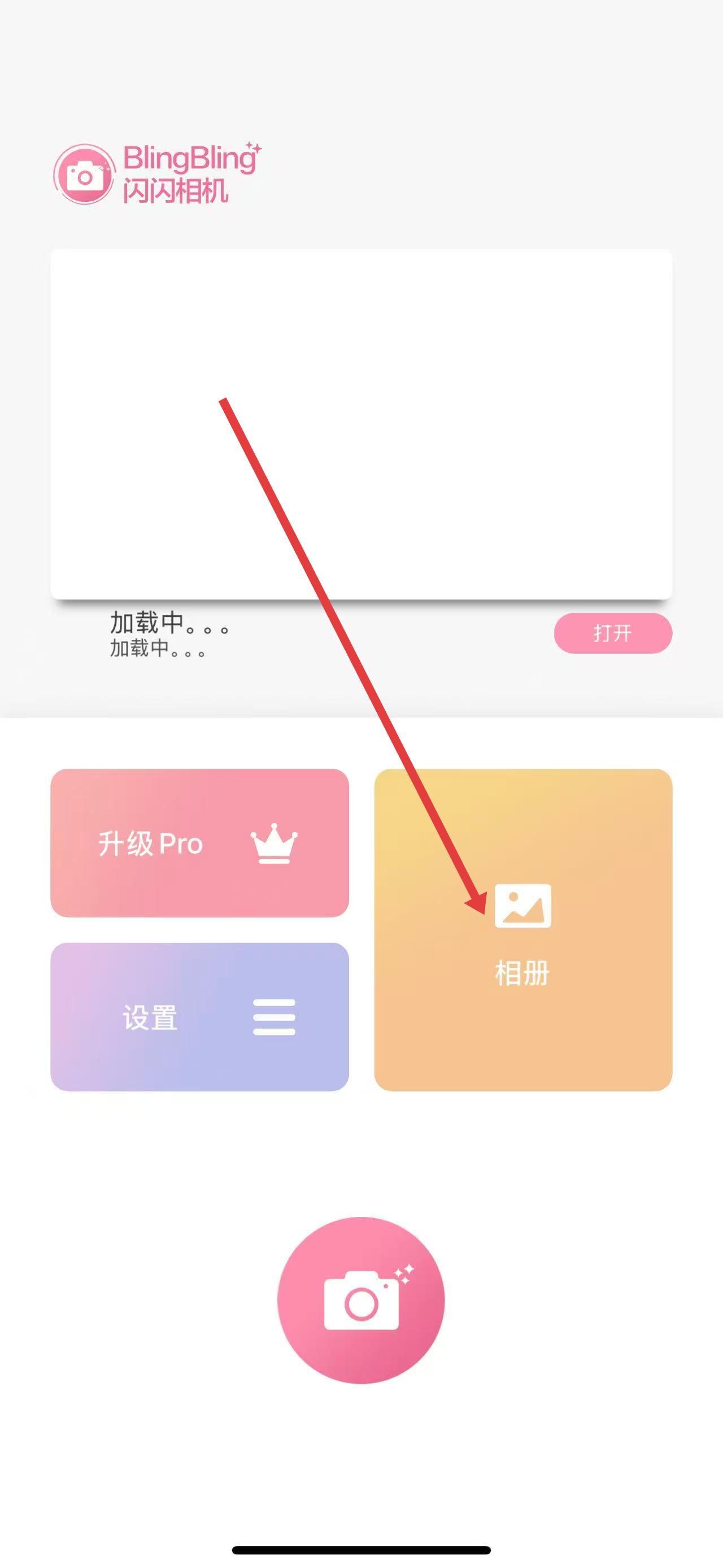 1、打开闪闪相机应用,在主界面点击相册按钮,选择需要修图的照片。