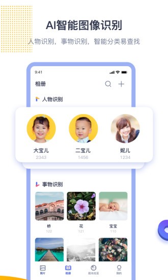 人物识别,地点分类,图像事物识别分类。自动分类,照片更容易查找。