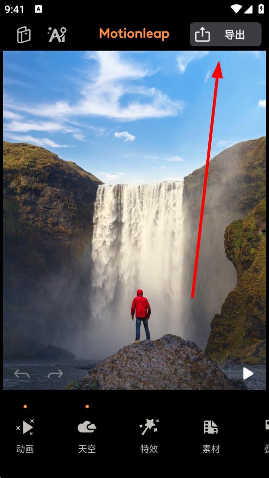 1、在Motionleap中完成图片编辑后,点击界面右上角的导出按钮,进入导出设置页面。
