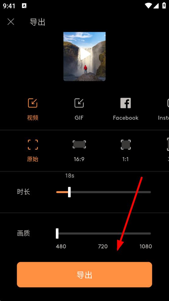 2、在导出设置页面,选择导出的格式、分辨率等参数后,再次点击下方的导出按钮,等待导出完成。