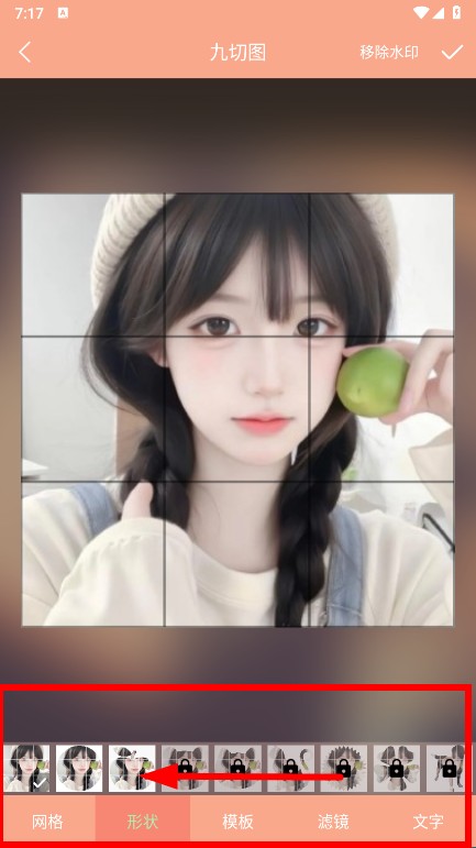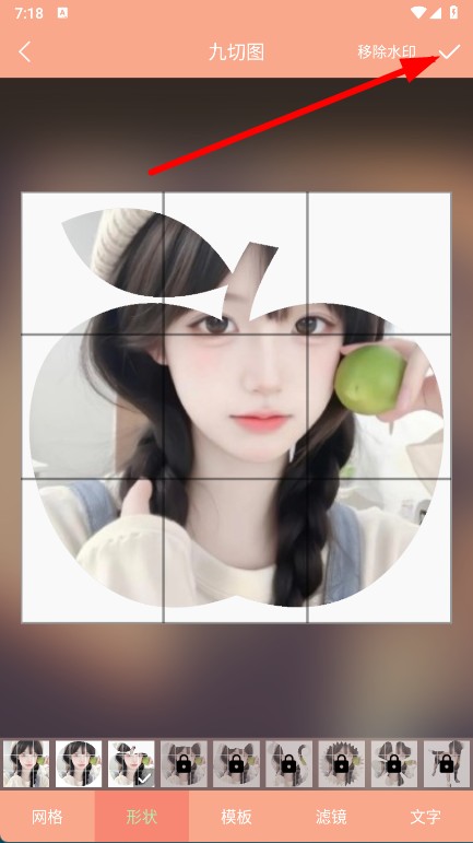 4、调整完成后,点击右上角对勾,即可完成九切图制作。