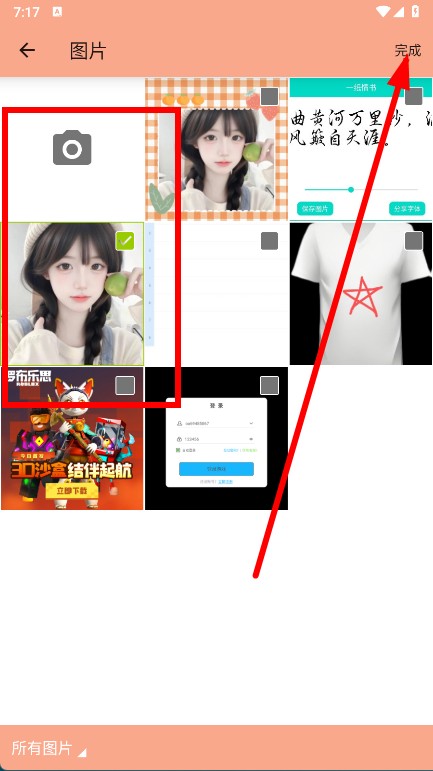2、挑选要进行九切图制作的图片,点击右上角完成。