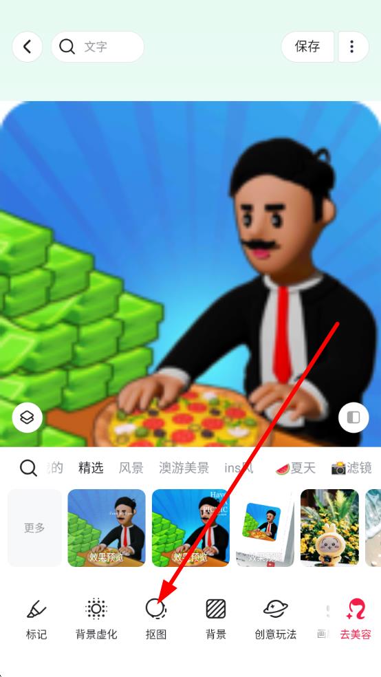 2、在编辑页底部,点击抠图功能,启动抠图操作流程。