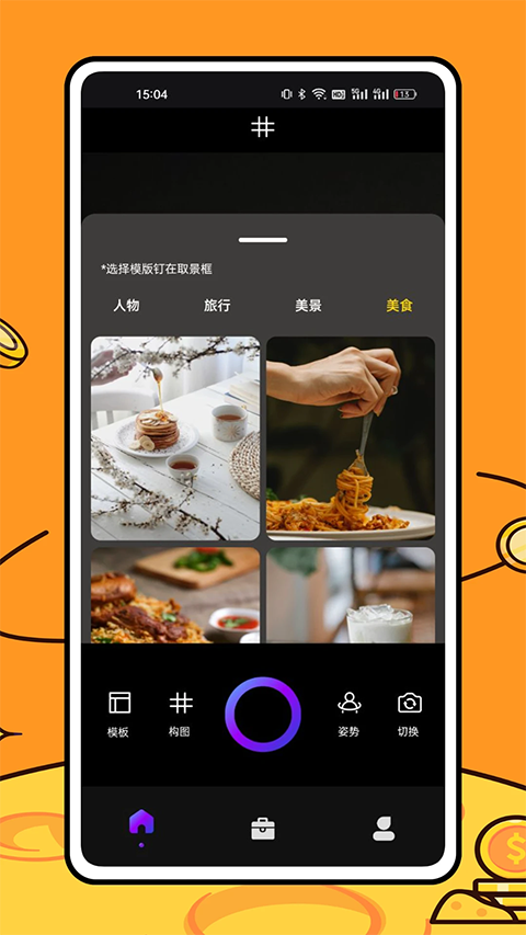 美食相机是一款整合美食拍摄与切图和设计还有拼接等功能,核心围绕“全流程美食记录、多元模板适配、专业加工分享”设计,解决用户拍摄美食缺乏构图技巧、后期处理工具单一、分享流程繁琐的痛点,聚焦美食爱好者需求的拍照与设计,提供从拍摄到分享的一站式服务,搭配细致的画面构图指导,帮助拍出具有艺术感的美食照片。