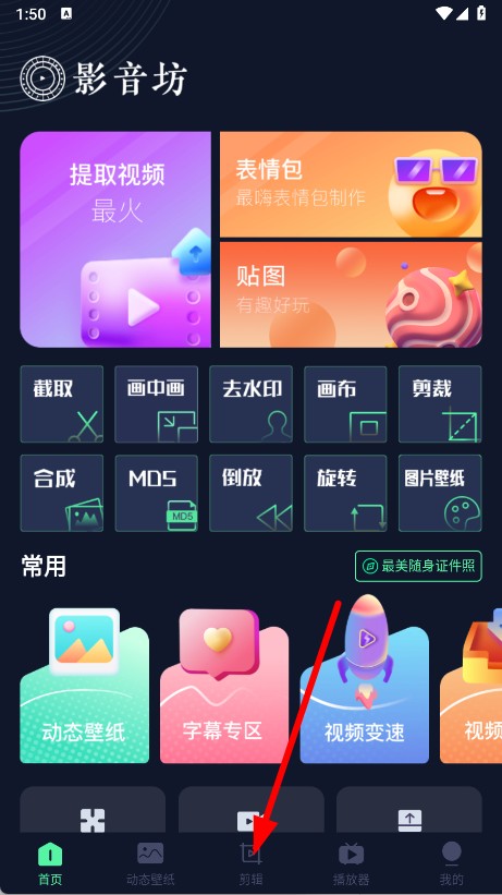 1、打开影音坊,点击底部剪辑选项,进入剪辑页面。