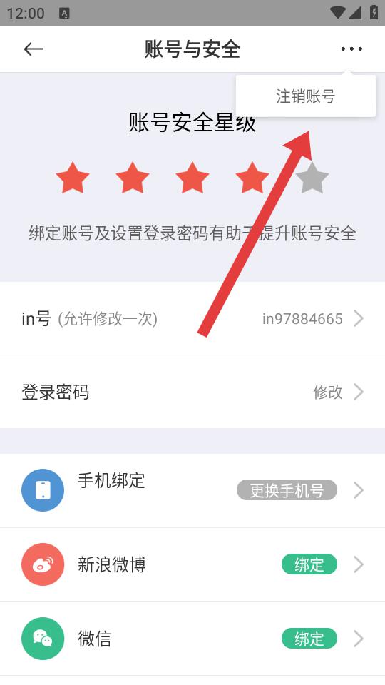 3、在账号与安全页面右上角,点击三个点的按钮,选择注销账号。