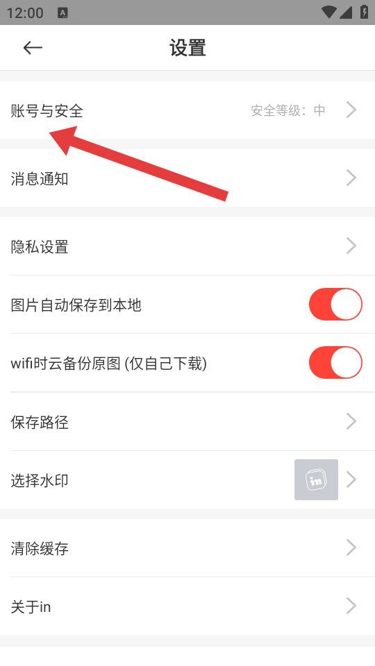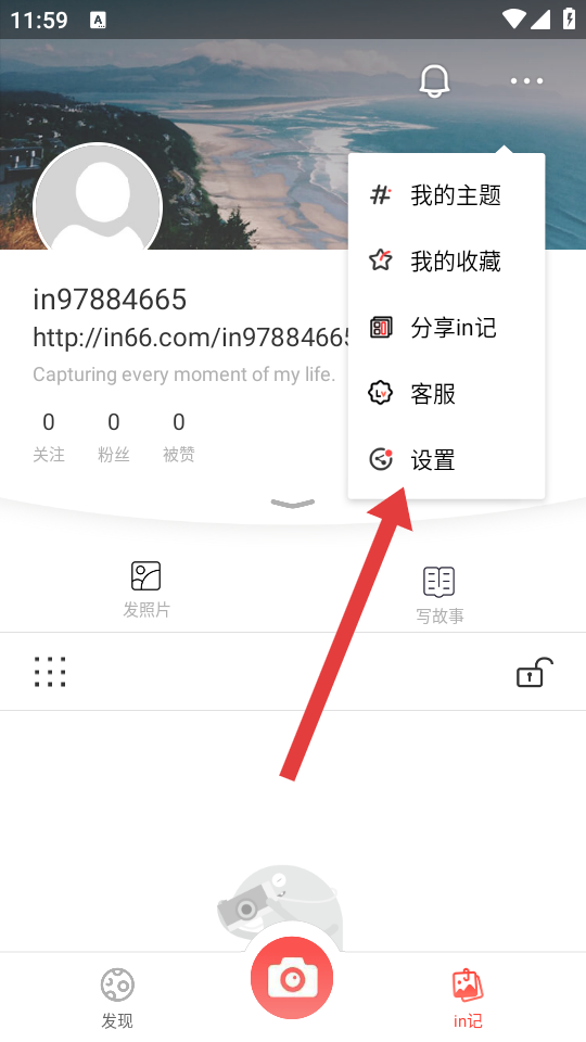 1、在in记页面右上角,点击三个点的菜单按钮,选择设置进入设置界面。