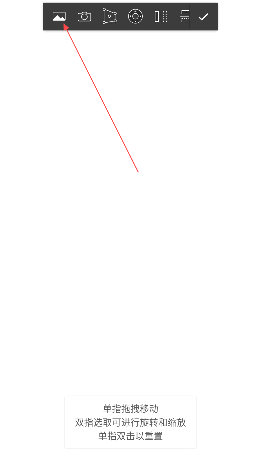 3、在文件存储或相册里,选中需导入的图片,完成导入,可单指拖拽、双指旋转缩放、单指双击重置图片。