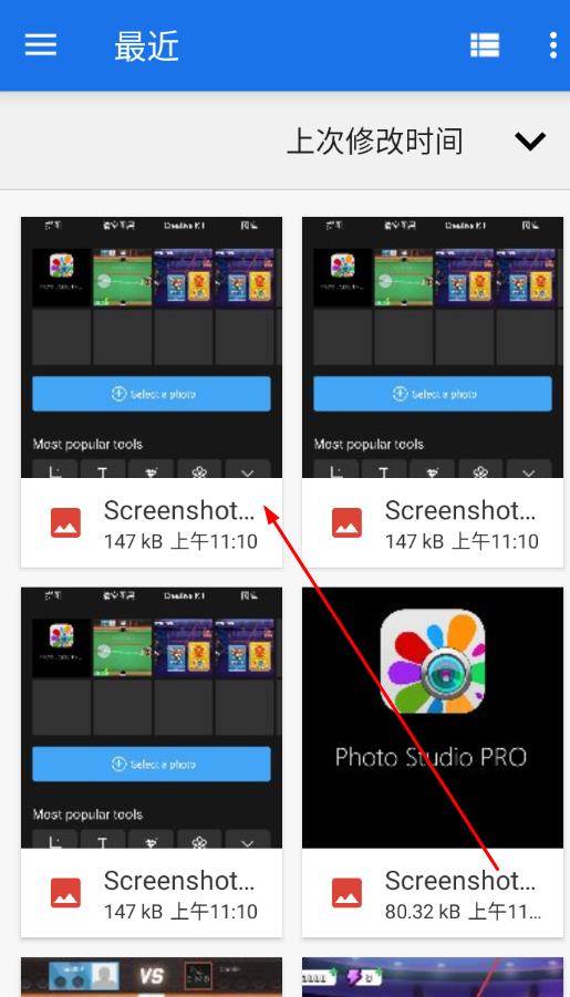 3、在最近页面里,找到显示为screenshot...且对应Photo Studio PRO相关内容的截图文件,点击该文件,就能基于此开始照片编辑操作。