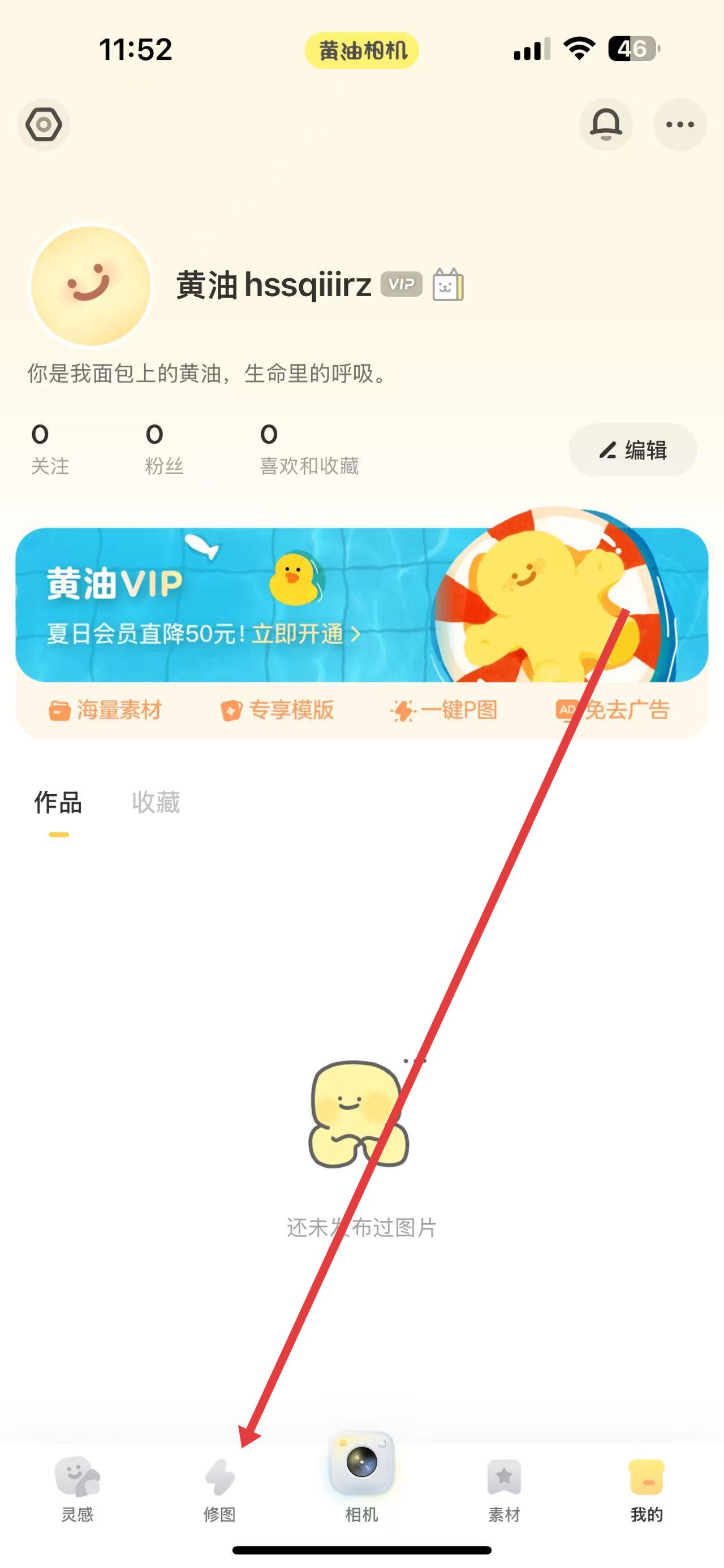 1、打开黄油相机,点击底部导航栏中的修图选项进入修图界面。