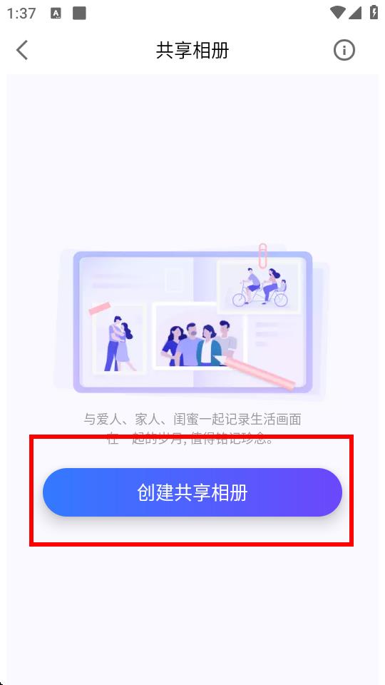 3、进入共享相册界面后,点击创建共享相册按钮。