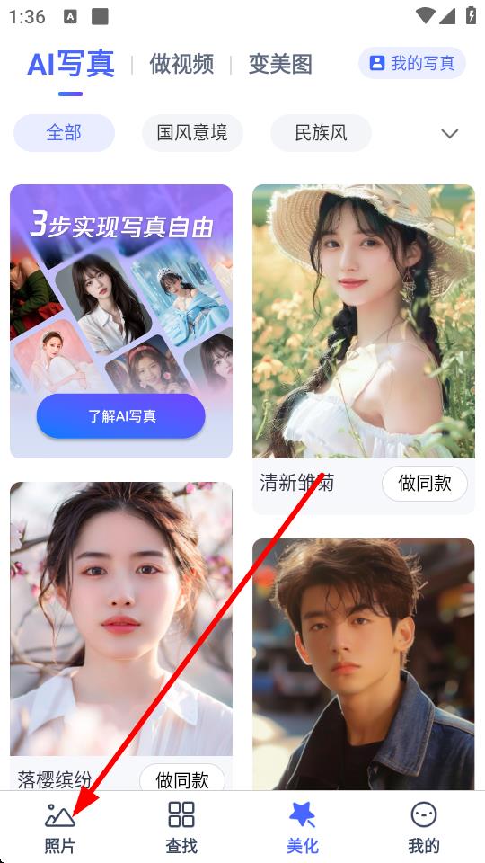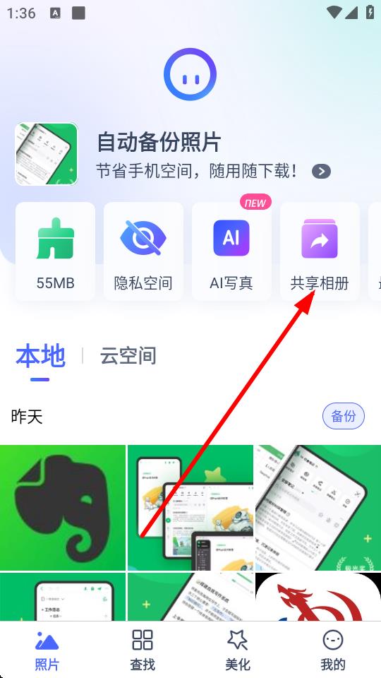 1、打开相册管家APP,点击底部导航栏中的照片选项进入照片页面。
