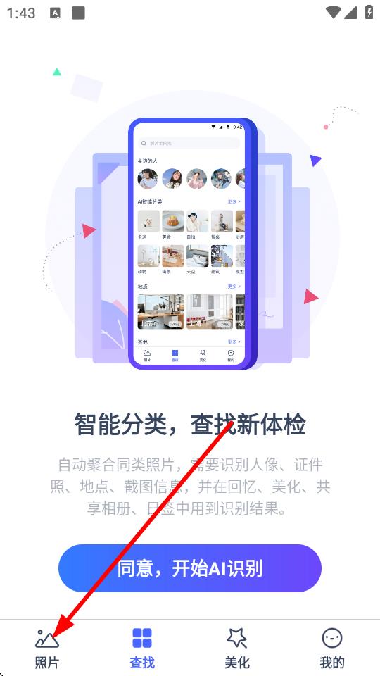 1、打开相册管家APP,点击底部导航栏中的照片选项。