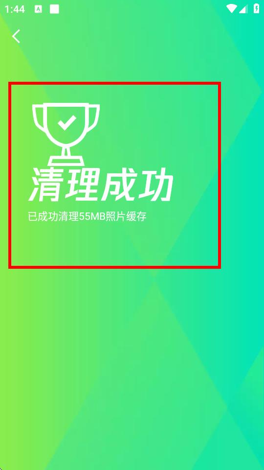 4、等待清理完成,界面会提示清理成功,以及清理的缓存空间大小。
