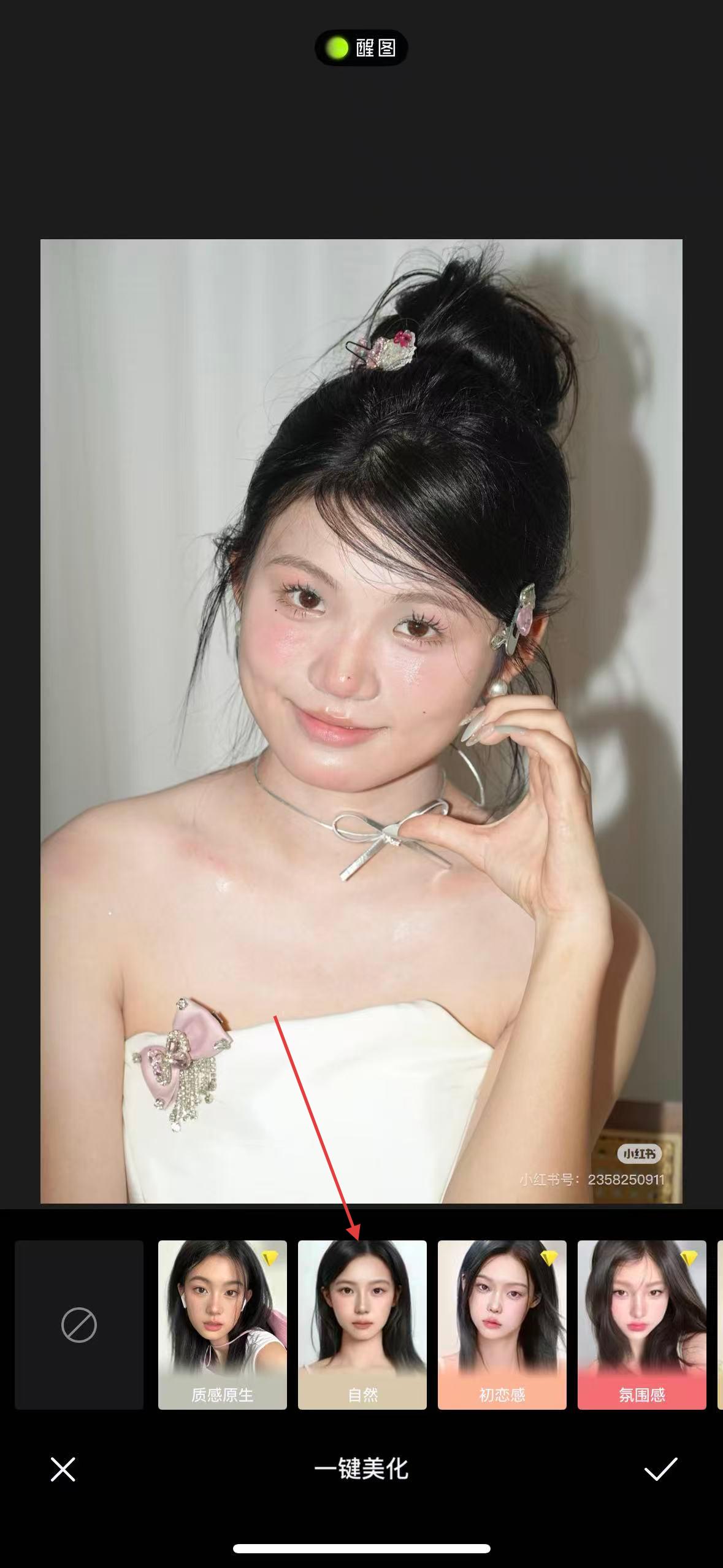 4、在一键美化选择页面,挑选心仪的美化效果,比如自然效果,应用该效果美化照片。