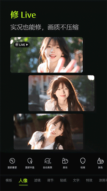 2、操作便捷易懂:界面设计简洁清晰,无论是选择滤镜、添加贴纸,还是调整色调,操作步骤简单,新用户无需复杂学习,短时间内即可熟练掌握基本编辑技巧。
