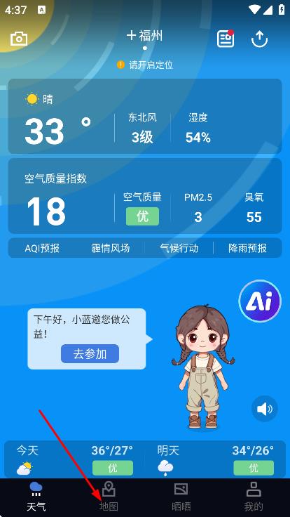 2、进入软件后,点击底部的地图,进入地图页面。