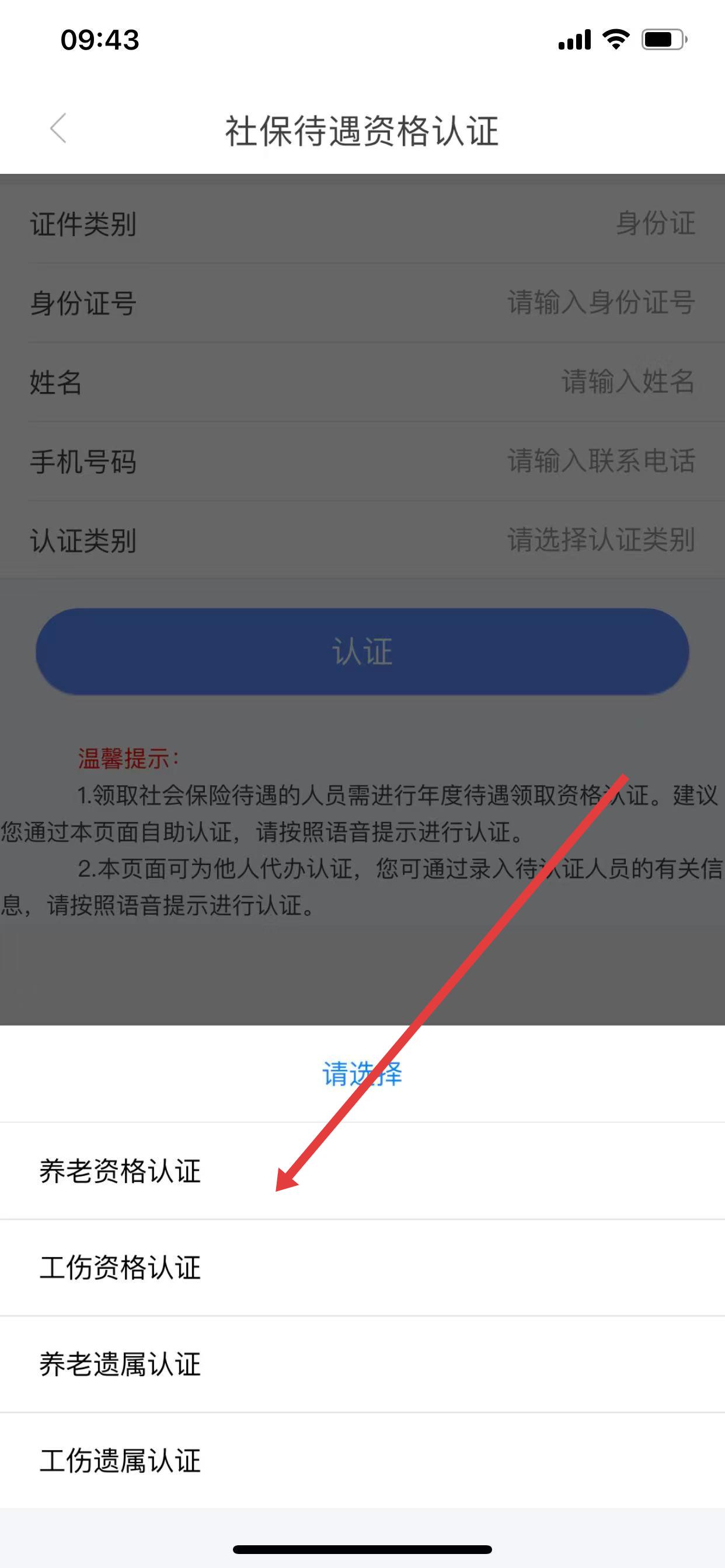 4.输入身份证号码,退休人员点击【养老资格认证】,遗属人员点击【养老遗属认证】,按提示步骤操作;