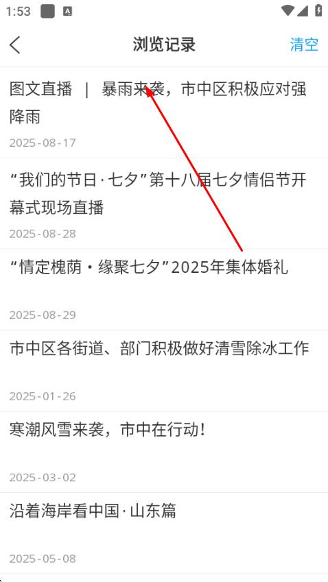 3、进入浏览记录页面后,即可查看之前浏览过的内容列表,点击浏览记录中的内容。
