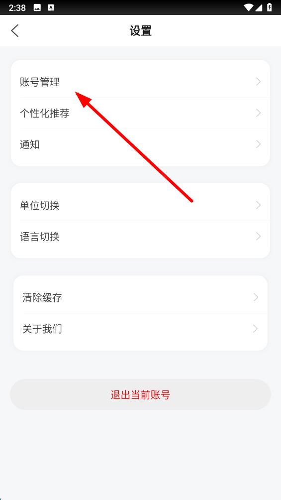 3、在设置界面里,点击账号管理选项,进入账号管理页面。