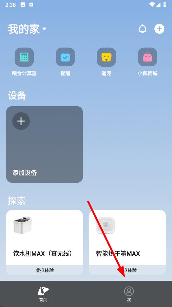 1、打开小佩宠物app,点击底部导航栏中的我,进入个人中心页面。