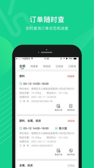 3.有着清晰直观的订单管理系统,对于各种回收利用的订单进行全方面的管理,时刻了解订单详情。