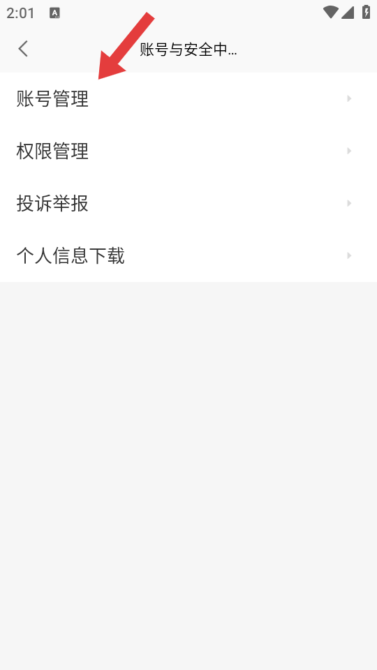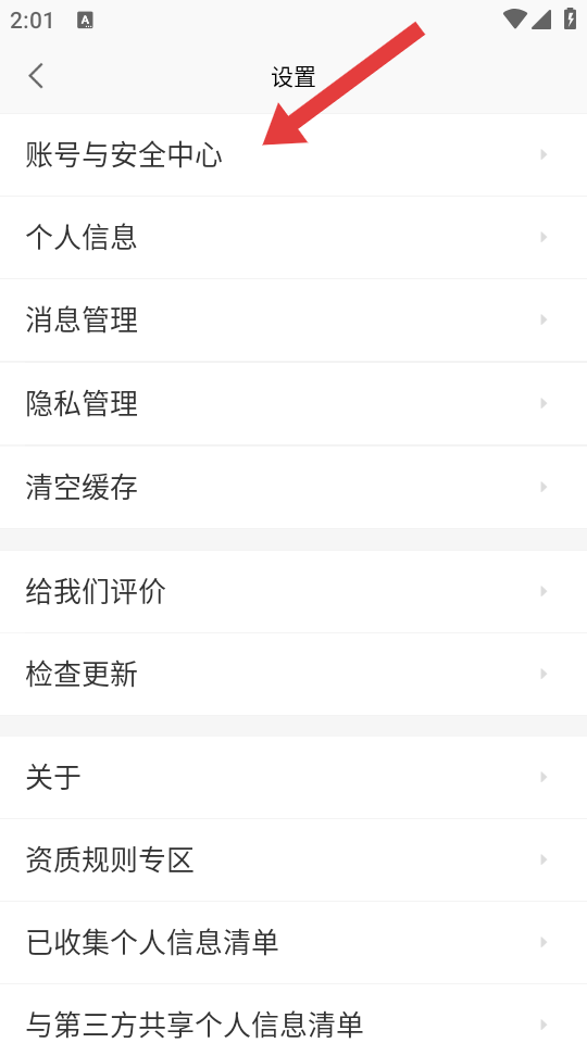 2、在账号与安全中心的页面中,点击账号管理的选项,进入账号与安全的详情页。