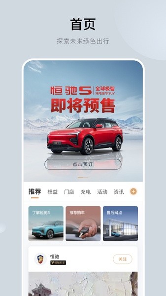 恒驰,恒大新能源汽车旗下的汽车app,提供第一手的恒驰车官方资讯消息,用户通过软件实现在线看车,了解车辆信息,预约订购车辆,参与在线活动,十分方便,有需要的用户可以下载使用!