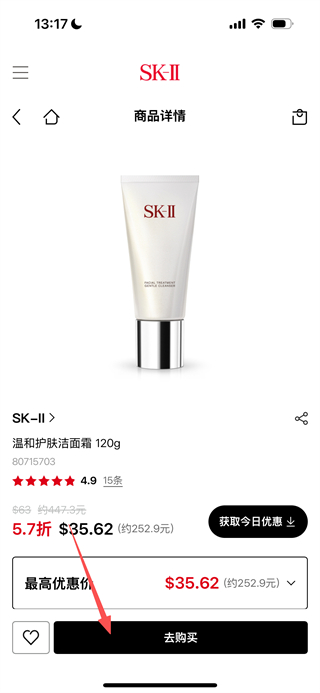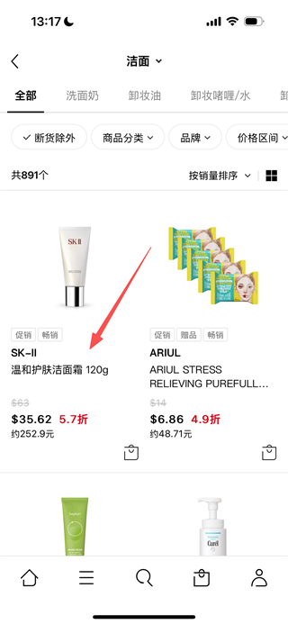 3、在洁面商品列表中,选择目标商品,进入商品详情页面。