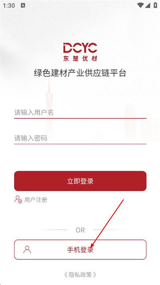 2、在登录页面,点击手机登录,切换到手机号验证码登录界面。