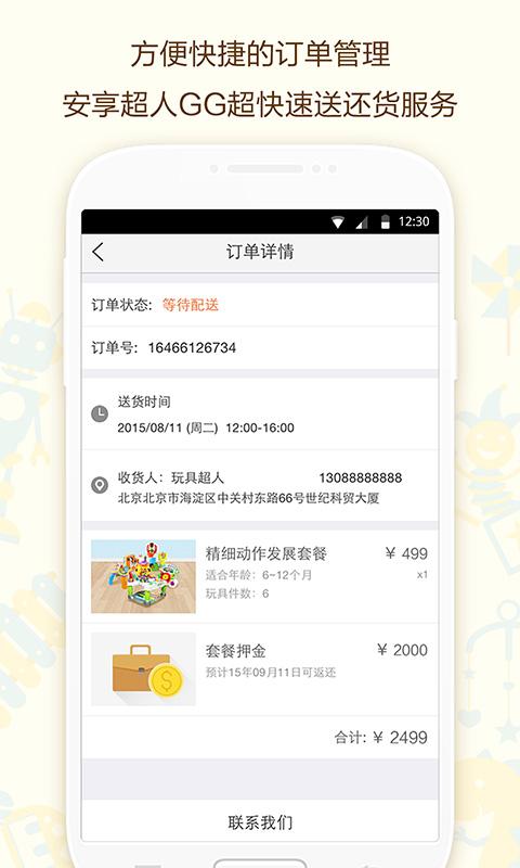 方便快捷的订单管理功能,在第一时间让您知道玩具的配送状态,安享超人GG贴心提醒和超快速送还货服务