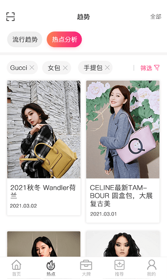 2、当季秋冬款的走秀包,潮牌达人的街拍款,闺蜜小资的百搭款;