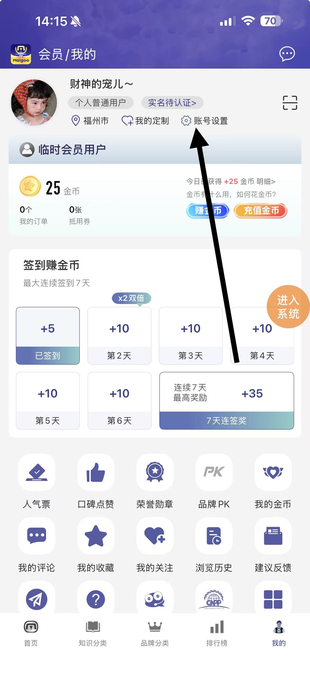 2、在个人页面中,点击账号设置选项,进入账号设置界面。