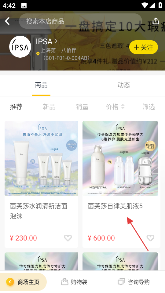 3、在IPSA商品页面,挑选心仪的商品,比如茵芙莎自律美肌液5,点击进入商品详情页。